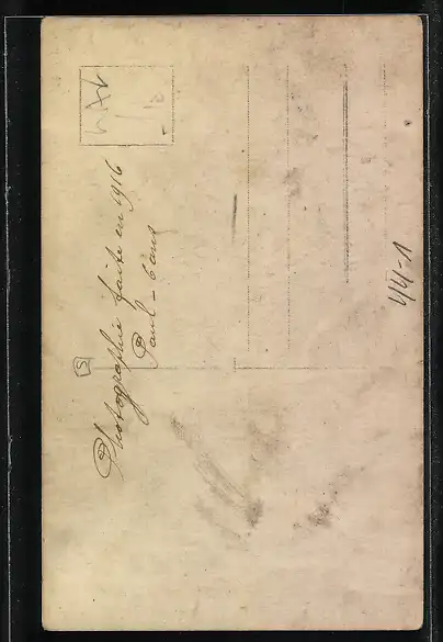 Personenbezogene Daten auf der Rückseite der Karte wurden durch blauen Textmarker unkenntlich gemacht. Die blauen Stellen sind auf die Vorderseite durchgeweicht und wirken sich negativ auf das Postkartenfoto aus