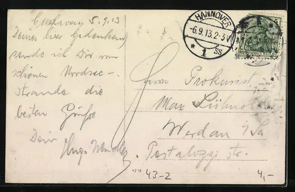 alte Ansichtskarte, gelaufen 1913, Stempelspur, guter Zustand