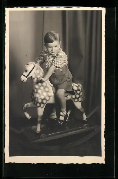 Foto-AK Kleiner Junge auf einem Schaukelpferd
