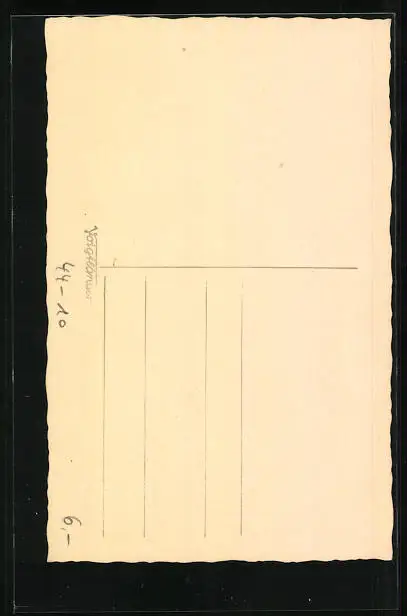 Personenbezogene Daten auf der Rückseite der Karte wurden durch blauen Textmarker unkenntlich gemacht. Die blauen Stellen sind auf die Vorderseite durchgeweicht und wirken sich negativ auf das Postkartenfoto aus