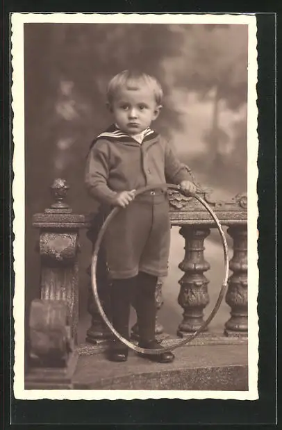 Foto-AK Kleiner Junge im Matrosenhemd mit Reifen