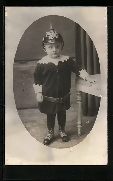 Foto-AK Kleiner Junge mit Pickelhaube