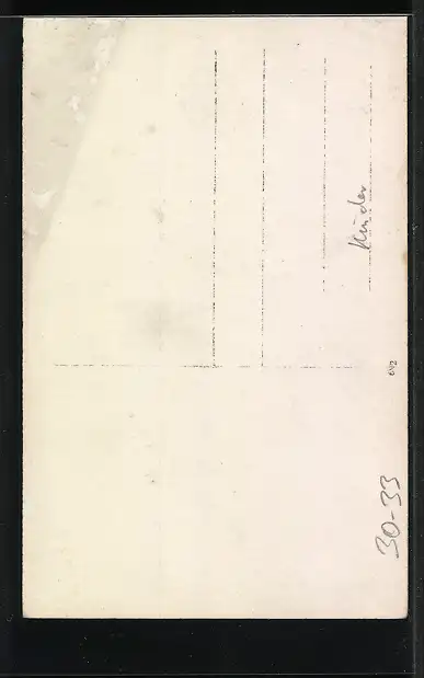 Personenbezogene Daten auf der Rückseite der Karte wurden durch blauen Textmarker unkenntlich gemacht. Die blauen Stellen sind auf die Vorderseite durchgeweicht und wirken sich negativ auf das Postkartenfoto aus