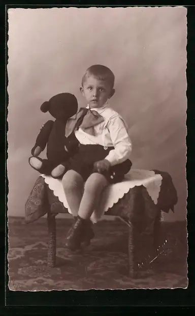 Foto-AK Kleiner Junge sitzt mit Teddy