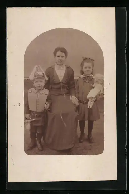 Foto-AK Kleiner Soldat in Galauniform mit Mutter und Schwester