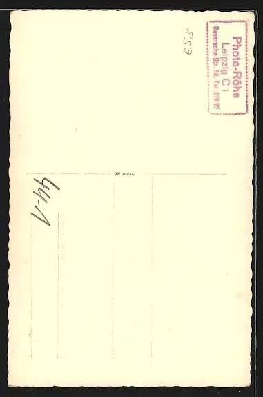 Personenbezogene Daten auf der Rückseite der Karte wurden durch blauen Textmarker unkenntlich gemacht. Die blauen Stellen sind auf die Vorderseite durchgeweicht und wirken sich negativ auf das Postkartenfoto aus