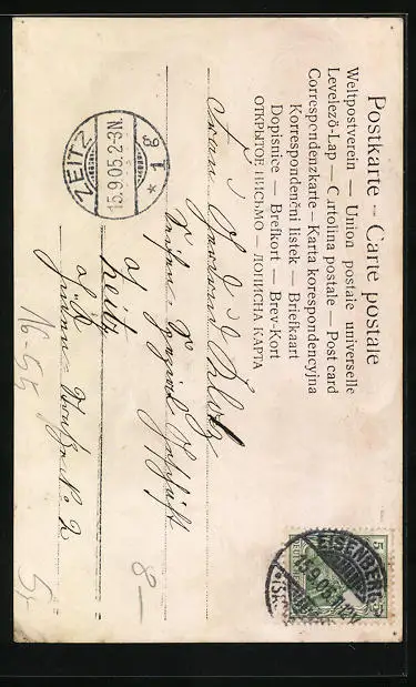 alte Ansichtskarte, gelaufen 1905, Stecknadellöcher an den Ecken, Eckknick re. unten, guter Zustand