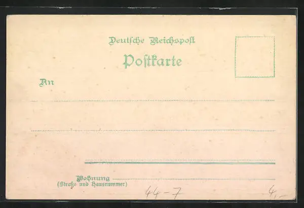 Personenbezogene Daten auf der Rückseite der Karte wurden durch blauen Textmarker unkenntlich gemacht. Die blauen Stellen sind auf die Vorderseite durchgeweicht und wirken sich negativ auf das Postkartenfoto aus
