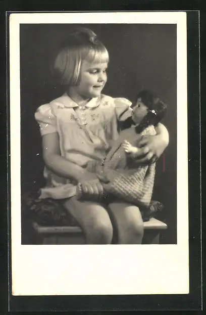 Foto-AK Kleines Mädchen mit ihrer Puppe