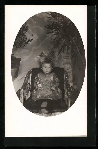 Foto-AK Kleines Mädchen mit riesiger Schleife im Haar, Passepartout