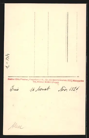Personenbezogene Daten auf der Rückseite der Karte wurden durch blauen Textmarker unkenntlich gemacht. Die blauen Stellen sind auf die Vorderseite durchgeweicht und wirken sich negativ auf das Postkartenfoto aus