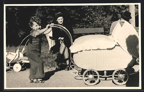 Foto-AK Kleines Mädchen schiebt einen Kinderwagen