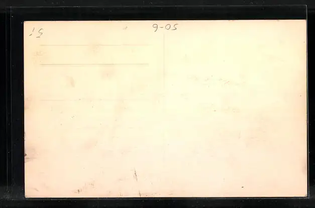 Personenbezogene Daten auf der Rückseite der Karte wurden durch blauen Textmarker unkenntlich gemacht. Die blauen Stellen sind auf die Vorderseite durchgeweicht und wirken sich negativ auf das Postkartenfoto aus