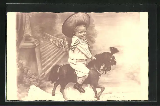 Foto-AK Knabe im Matrosenanzug auf Schaukelpferd
