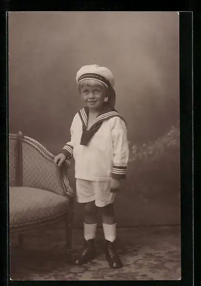 Foto-AK Knabe im Matrosenanzug mit Mützenband Seeadler