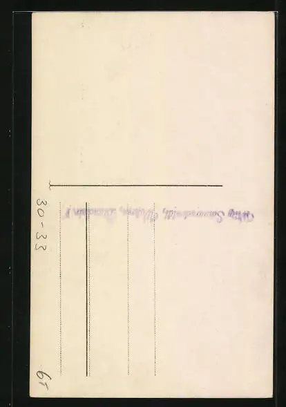 Personenbezogene Daten auf der Rückseite der Karte wurden durch blauen Textmarker unkenntlich gemacht. Die blauen Stellen sind auf die Vorderseite durchgeweicht und wirken sich negativ auf das Postkartenfoto aus