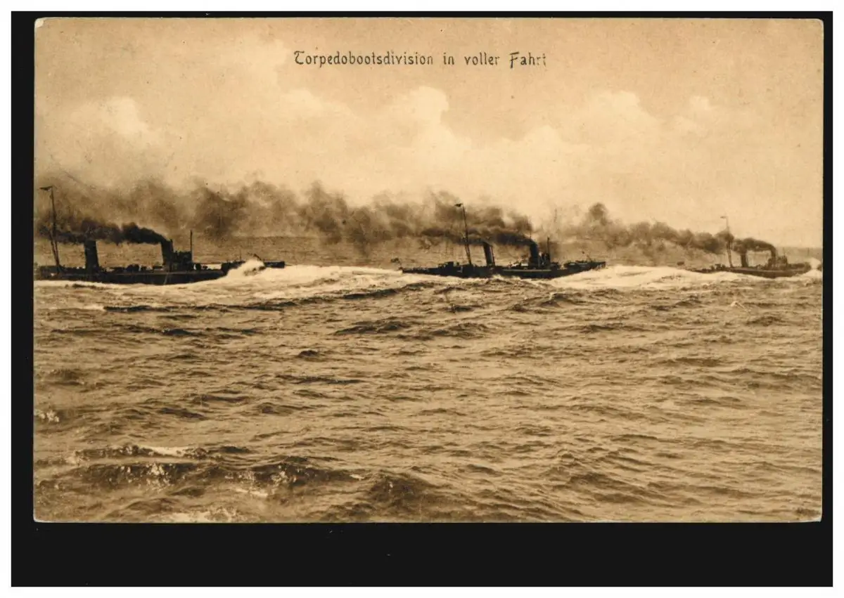Foto-AK Kriegsschiffe: Torpedobootsdivision in voller Fahrt, KIEL 4.2.1912