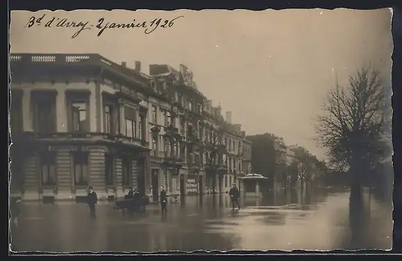 Foto-AK Liege, Hochwasser 1926, Breite Strasse unter Wasser