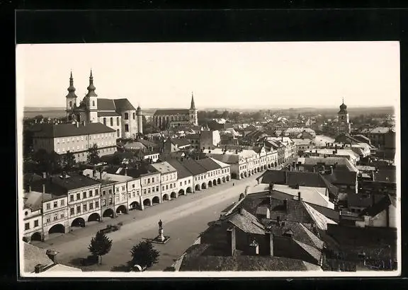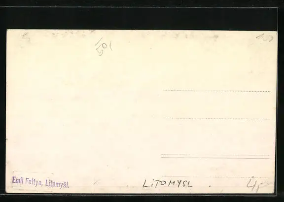 Foto-AK Litomysl, Strassenpartie mit Kirche