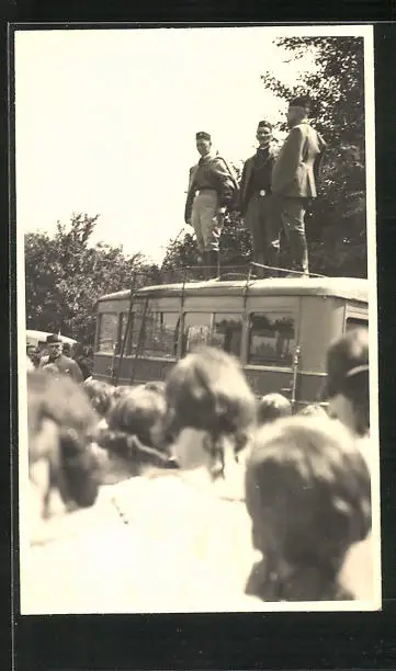 Foto-AK Lovcicky, Soldaten auf Autobus