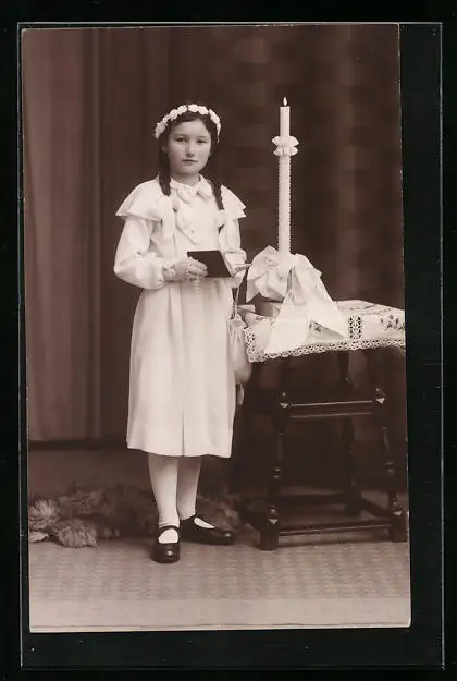 Foto-AK Mädchen mit Gebetsbuch zur Kommunion