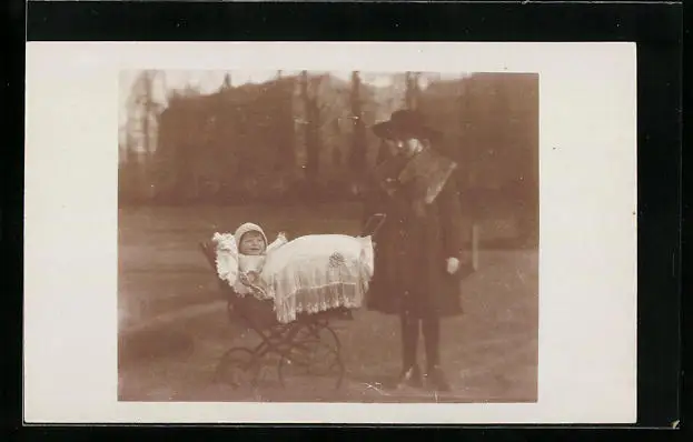 Foto-AK Mädchen mit Kinderwagen