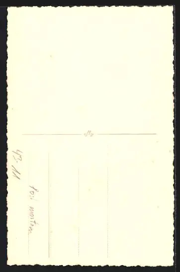 Personenbezogene Daten auf der Rückseite der Karte wurden durch blauen Textmarker unkenntlich gemacht. Die blauen Stellen sind auf die Vorderseite durchgeweicht und wirken sich negativ auf das Postkartenfoto aus