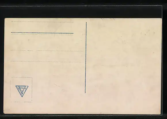Personenbezogene Daten auf der Rückseite der Karte wurden durch blauen Textmarker unkenntlich gemacht. Die blauen Stellen sind auf die Vorderseite durchgeweicht und wirken sich negativ auf das Postkartenfoto aus