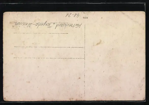 Foto-AK Matrosen in Uniform mit Mützenband Torpedo-Division