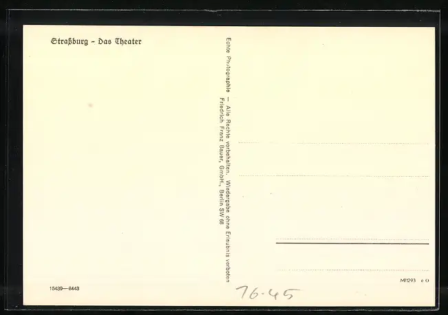 Personenbezogene Daten auf der Rückseite der Karte wurden durch blauen Textmarker unkenntlich gemacht. Die blauen Stellen sind auf die Vorderseite durchgeweicht und wirken sich negativ auf das Postkartenfoto aus
