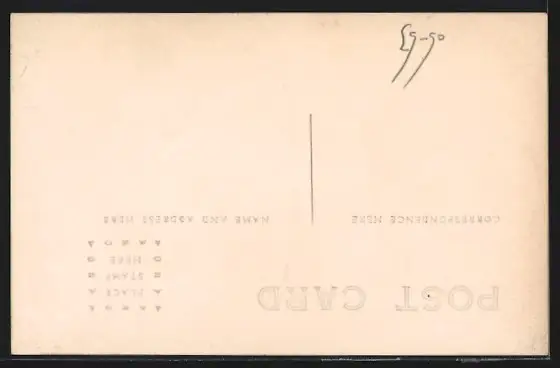 Personenbezogene Daten auf der Rückseite der Karte wurden durch blauen Textmarker unkenntlich gemacht. Die blauen Stellen sind auf die Vorderseite durchgeweicht und wirken sich negativ auf das Postkartenfoto aus