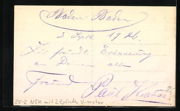Foto-AK Motorrad, NSU mit 2 Zylinder U-Motor