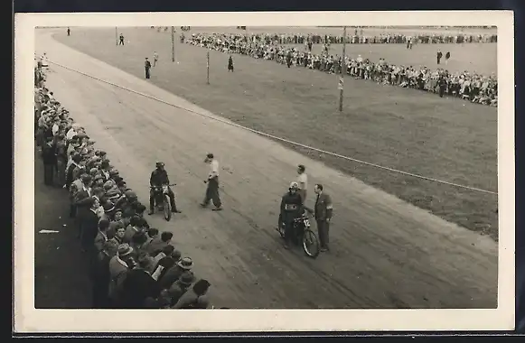 Foto-AK Motorrad Rennfahrer am Start zu einem Speedway Rennen