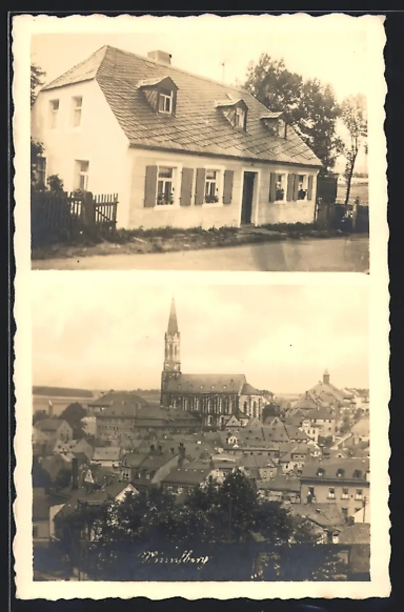 Foto-AK Münchberg, Ortsansicht mit Kirche
