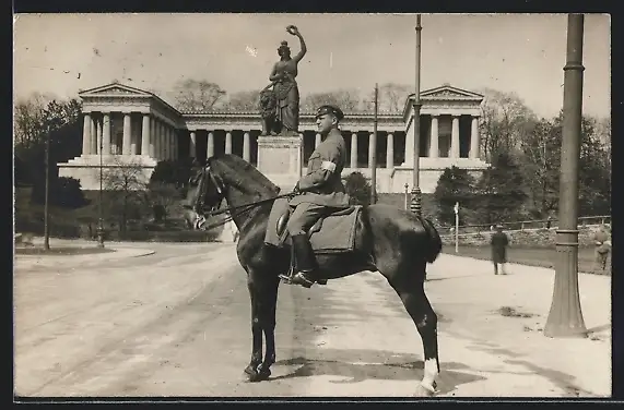 Foto-AK München, Bavaria und Soldat zu Pferde