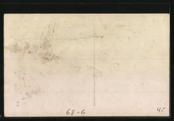 Personenbezogene Daten auf der Rückseite der Karte wurden durch blauen Textmarker unkenntlich gemacht. Die blauen Stellen sind auf die Vorderseite durchgeweicht und wirken sich negativ auf das Postkartenfoto aus
