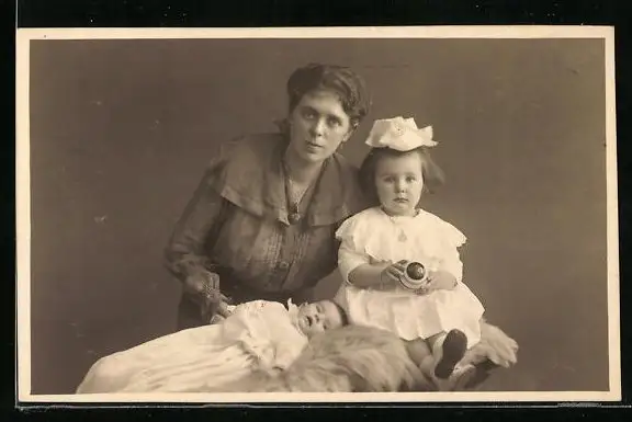 Foto-AK Mutter mit Täufling und Mädchen mit Spielzeug