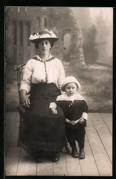 Foto-AK Mutter mit ihrem Kind in Studiokulisse