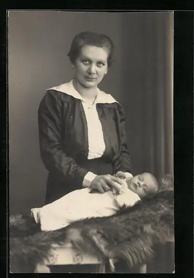 Foto-AK Mutter mit ihrem Neugeborenem, Mutterglück