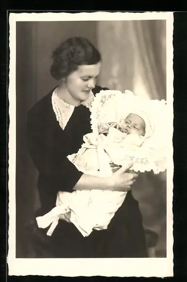 Foto-AK Mutter mit ihrem Neugeborenem im Arm, Mutterglück