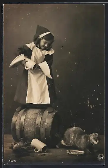 Foto-AK NPG Nr.: Münchner Kindl begiesst eine Katze mit Bier