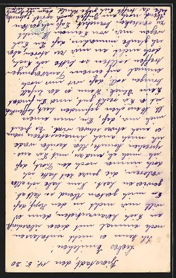 Personenbezogene Daten auf der Rückseite der Karte wurden durch blauen Textmarker unkenntlich gemacht. Die blauen Stellen sind auf die Vorderseite durchgeweicht und wirken sich negativ auf das Postkartenfoto aus