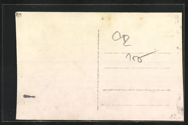 alte Ansichtskarte, ungelaufen, rückseitig Klebe- und Papierreste, Stecknadelloch oben mittig, linke u. rechte Kante beschnitten