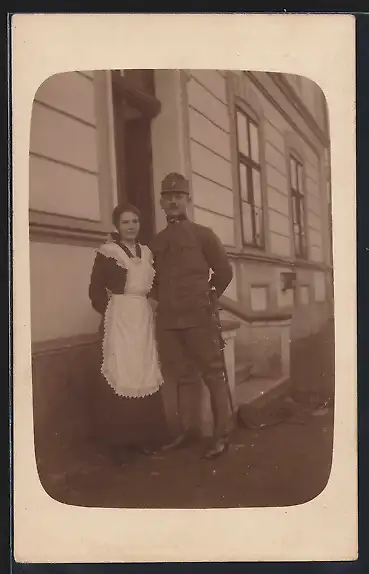 Foto-AK Österreichischer Soldat in Uniform mit Frau