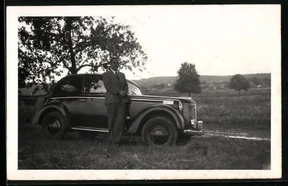 Foto-AK Opel Auto, Mann im Grünen