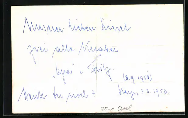 Personenbezogene Daten auf der Rückseite der Karte wurden durch blauen Textmarker unkenntlich gemacht. Die blauen Stellen sind auf die Vorderseite durchgeweicht und wirken sich negativ auf das Postkartenfoto aus