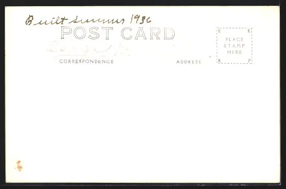 Personenbezogene Daten auf der Rückseite der Karte wurden durch blauen Textmarker unkenntlich gemacht. Die blauen Stellen sind auf die Vorderseite durchgeweicht und wirken sich negativ auf das Postkartenfoto aus