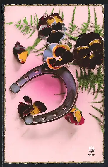 Foto-AK P. C. Paris: Hufeisen und verschiedene Blüten