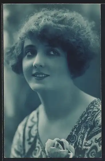 Foto-AK P. C. Paris: Junge Frau mit lockigem Haar und verträumtem Blick