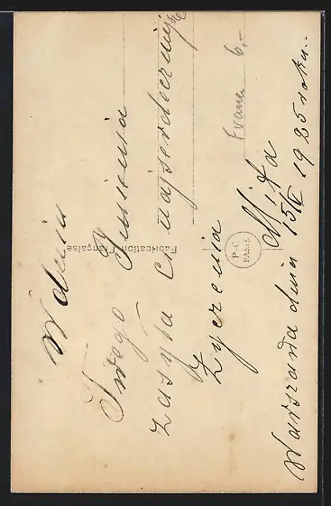 Personenbezogene Daten auf der Rückseite der Karte wurden durch blauen Textmarker unkenntlich gemacht. Die blauen Stellen sind auf die Vorderseite durchgeweicht und wirken sich negativ auf das Postkartenfoto aus